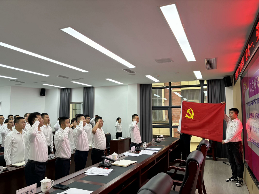 6月27日上午,活動(dòng)在莊嚴(yán)的國(guó)歌聲中開(kāi)始。公司黨支部書(shū)記、董事長(zhǎng)袁波同志帶領(lǐng)全體黨員重溫入黨誓詞。面對(duì)鮮紅的黨旗,大家一起回憶入黨時(shí)那激昂的心,初心使命歷久彌堅(jiān)。