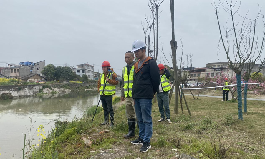 3月29日,公司副總經(jīng)理馮文生帶隊(duì)檢查秀水河秀水鎮(zhèn)場(chǎng)鎮(zhèn)段防洪治理工程推進(jìn)情況。(素材來(lái)源:工程項(xiàng)目部 張瑞桃)