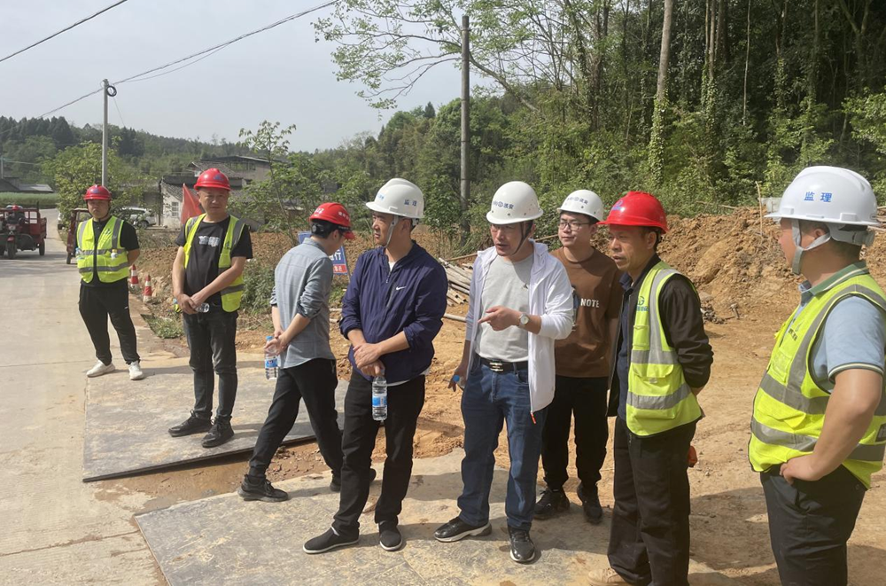4月16日,區(qū)水利局一行到綿陽市安州區(qū)現(xiàn)代化灌區(qū)建設(shè)項(xiàng)目檢查建設(shè)情況。(素材來源:工程項(xiàng)目部 辛佳洋)