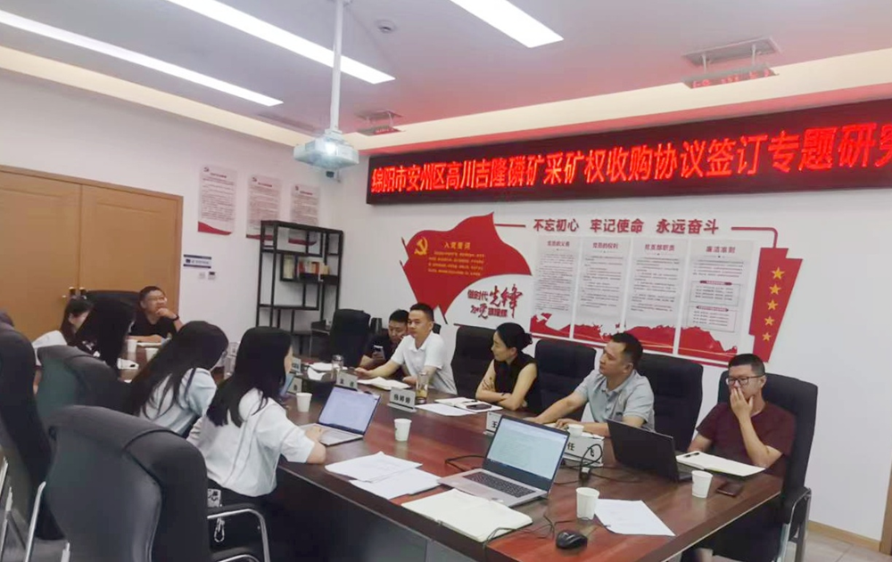 6月10日,公司召開綿陽市安州區(qū)高川吉隆磷礦采礦權收購協(xié)議專題研究會。公司支部書記、董事長袁波出席會議并講話,支部委員、總經(jīng)理楊婷婷主持會議。(素材來源:業(yè)務部 楊東平)