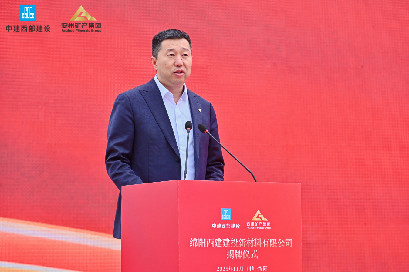 11月18日,綿陽安州礦產(chǎn)資源集團(tuán)有限公司(簡稱“安礦集團(tuán)”)與中建西部建設(shè)集團(tuán)第一有限公司(簡稱“中建西部一公司”)共同出資設(shè)立的綿陽西建建投新材料有限公司(簡稱“西建建投”)在安州正式揭牌。此次揭牌是央地國企強(qiáng)強(qiáng)聯(lián)手、優(yōu)勢互補(bǔ)的合作典范,不僅為綿陽綠色建材產(chǎn)業(yè)發(fā)展與“無廢城市”建設(shè)注入強(qiáng)勁動力,也開啟了雙方共創(chuàng)共贏的嶄新篇章。中建西部一公司黨委書記、董事長徐志飛,安礦集團(tuán)黨支部書記、董事長袁波出席揭牌儀式并致辭。